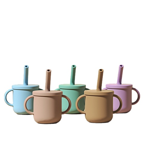 Sipping Water Sippy Baby Cups Reusable Silicone Straw Cup for Baby Training Drinking Water